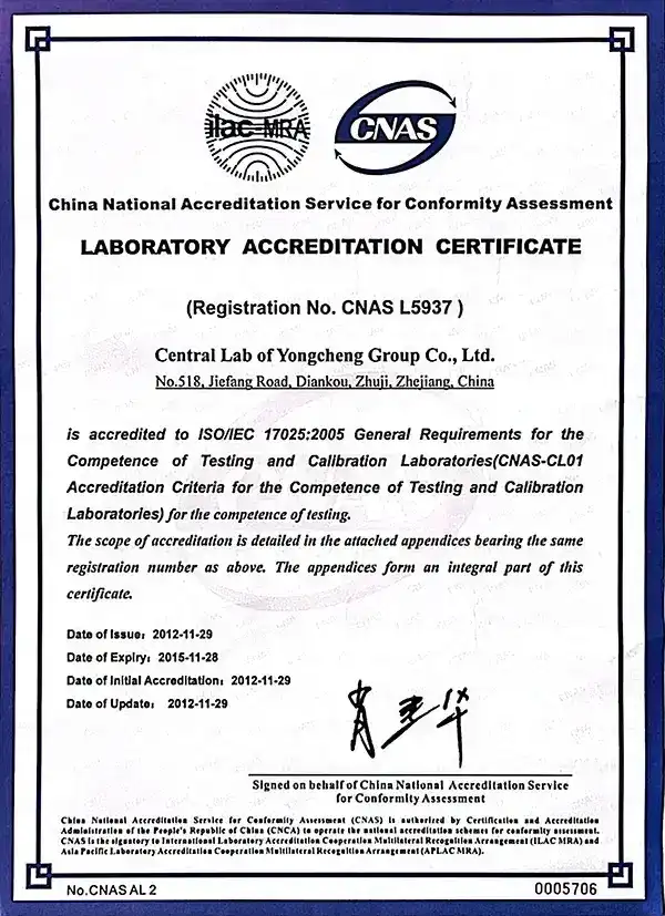 Notre laboratoire a obtenu l’accréditation CNAS pour ses compétences d’essais, avec des résultats reconnus dans le cadre de l’ILAC-MRA, couvrant 105 pays et économies. Le périmètre d’essais comprend la composition chimique, la dureté, la résistance à la traction, la métallographie, ainsi que des méthodes de contrôle non destructif (CND) telles que l’UT, le PT et le VT, en plus de l’inspection géométrique de pièces mécaniques. Tous les essais sont réalisés conformément aux normes internationales, notamment GB, ASTM, ISO, JIS et YS.